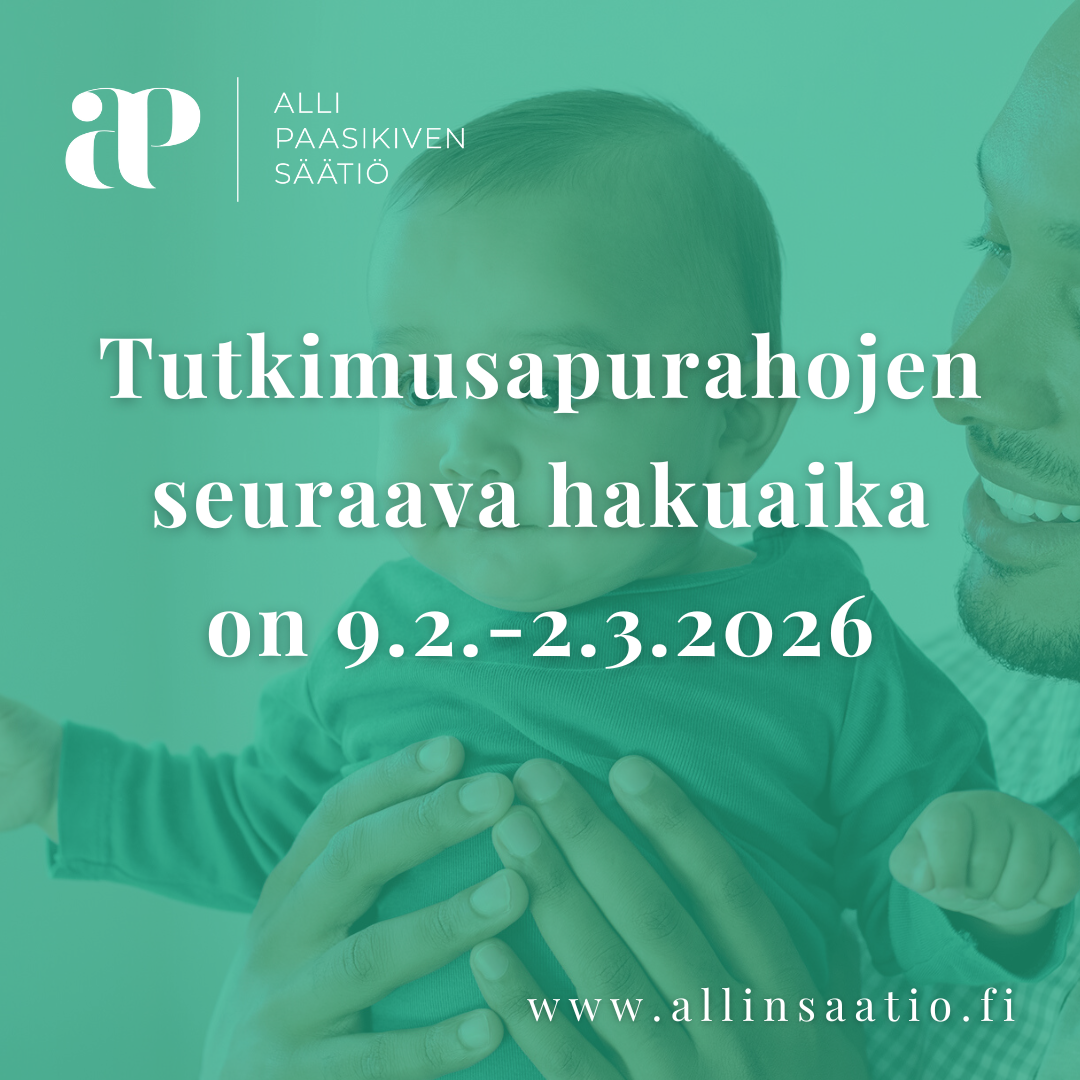 Tutkimusapurahojen seuraava hakuaika on 9.2.-2.3.2026.